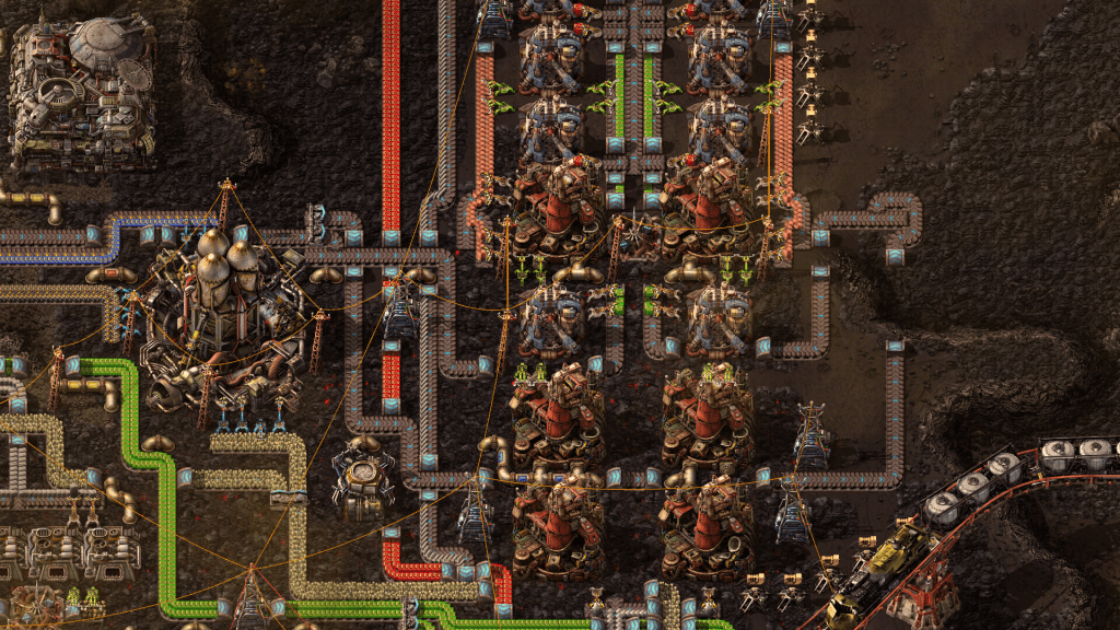 Por otro lado, para quienes conectan bien con la filosofía de FACTORIO, hay auténticos momentos de éxtasis técnico: cuando se termina una cadena interplanetaria que funciona sin fallos, la sincronización entre fábricas de distintos planetas es elegante como un reloj. El añadido de mecanismos como módulos de calidad (donde los objetos pueden tener rangos variables de rendimiento) y las vías elevadas (nuevas formas de transporte sobre el terreno) abre nuevas oportunidades para diseño y microoptimización. Es fácil perderse entre posibilidades: un tren elevado que atraviesa distintos niveles, con secciones “saltadas” para evitar congestiones, cruzando áreas de tormenta, mientras robots y circuitos controlan envíos planetarios: esos momentos son pura jugabilidad de alto nivel.