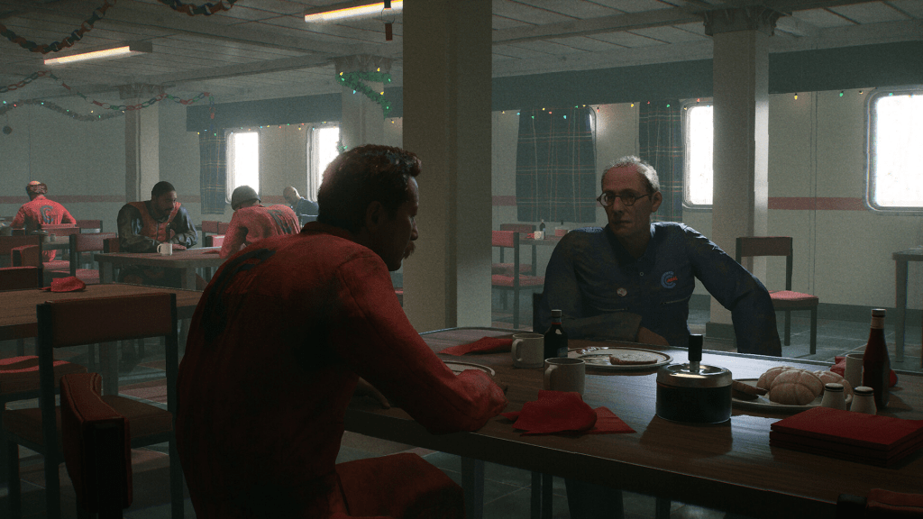 Visualmente, Still Wakes the Deep es una obra destacable. Su recreación de la plataforma Beira D es meticulosa, desde los pasillos angostos cubiertos de óxido hasta las zonas de maquinaria, dormitorios y oficinas. Cada espacio parece habitado, funcional y coherente con la época. El trabajo artístico refleja una comprensión profunda del diseño industrial setentero, con una paleta de colores apagada y una iluminación que oscila entre lo técnico y lo infernal. La atmósfera que logra con el juego de luces y reflejos es esencial para mantener la tensión incluso en los momentos de calma.