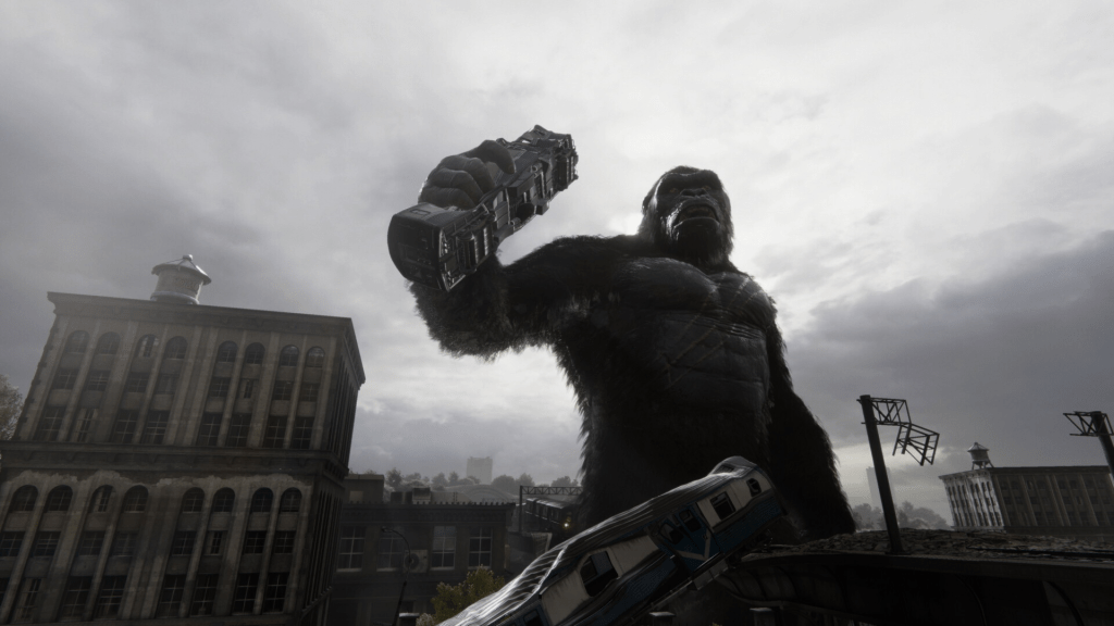 Las criaturas, especialmente Kong, están bien modeladas: sus animaciones cuando caminan, rugen o destruyen objetos logran transmitir peso y presencia. En esas secuencias, el título brilla pues la escala se siente real y la amenaza cobra vida. Por otro lado, los personajes humanos sufren de animaciones más rígidas y expresiones faciales menos logradas. En primer plano, David y los NPCs muestran movimientos algo estáticos, lo que resta verosimilitud. En algunos momentos el modelado facial o las transiciones gestuales resultan rígidas, dando la impresión de carecer de fluidez en escenas de diálogos.