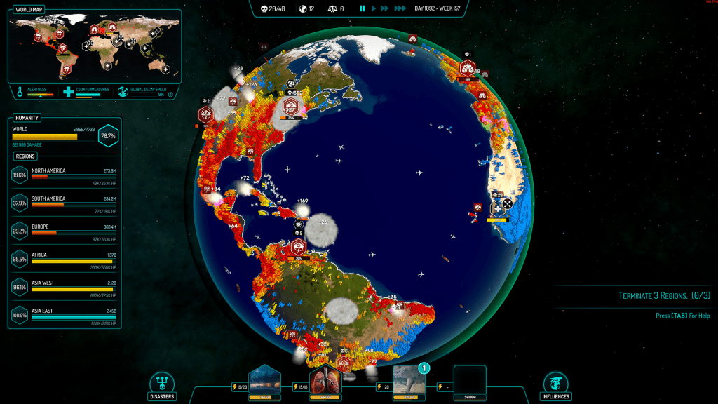 Desde mi perspectiva, todo ese trabajo de refinamiento va en la dirección correcta: en este tipo de juegos, el gran riesgo es que se vuelvan un “pulsa-habilidad”: que el jugador simplemente active desastre tras desastre sin reflexión, y la simulación pierda sentido. Si bien algunas fases muestran tendencias hacia eso, los ajustes actuales mitigarán en buena medida esa sensación. En los escenarios más complejos, uno debe repartir recursos, decidir en qué zonas concentrarse primero y prever la reacción humana a múltiples amenazas. Esa tensión estratégica es donde el juego brilla: cuando una combinación mal pensada (guerra + plaga + tormentas) puede detonarse contra ti si no planeas bien el momento y la localización.