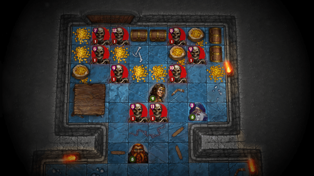 El control de los personajes resulta sencillo, pero esconde una capa táctica considerable. Cada decisión, desde el movimiento hasta el uso de habilidades o el momento de atacar, tiene consecuencias claras en el desarrollo de la partida. El azar juega un papel importante, especialmente en los combates, pero nunca llega a anular la planificación previa. La clave está en asumir ese componente imprevisible como parte del desafío y aprender a minimizar riesgos mediante una buena gestión de recursos.